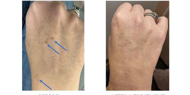 Motus AZ+ Laser hyperpigmentation treatment. These results are after 1 treatment only. Most often 2-4 treatments are required for resolution/best reduction. These results only took 5 minutes to achieve. These brown spots will be a thing of the past after 1-2 more treatments.